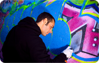 understanding the use of spray paints, stencils markers and paints working
